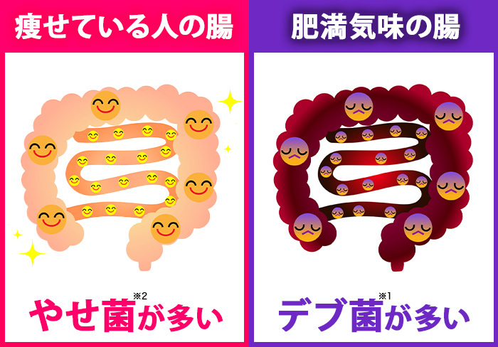 腸の中にはデブ菌※1とやせ菌※2が存在し